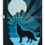 Sfumature di blu circondano questo lupo mentre ulula alla luna. Questo disegno viene creato utilizzando stampe a colori su un accendino nero opaco. Viene confezionato in una scatola regalo. Per prestazioni ottimali, utilizzare il fluido di ricarica originale per accendini Zippo.